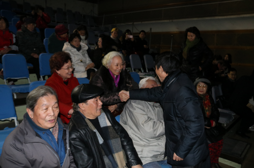 演出前,總團領導親切地與老同志們一一握手,互致問候,共迎2016新年的到來。