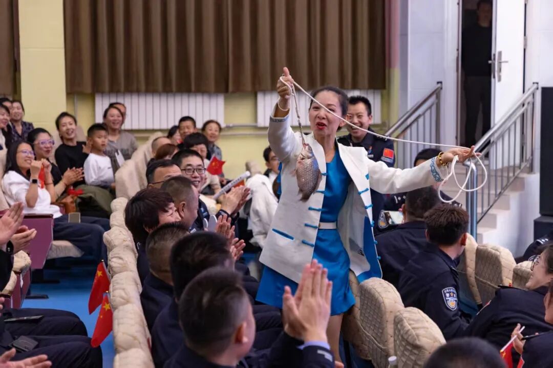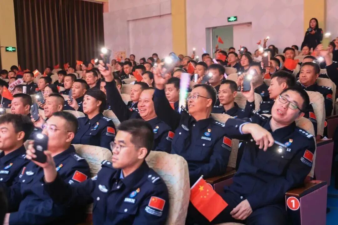 全場演出氣氛熱烈,民警們時而開懷大笑,時而感動拭淚,前來觀看的警嫂動情地說:“在邊疆地區(qū)能欣賞到這么精彩的演出,讓我們感受到了組織深深的關(guān)懷。” 駐守在國門邊境的民警李天源說道:“當(dāng)《紅旗飄飄》歌聲響起,我們頓時覺得堅守邊疆的職責(zé)更加神圣。” 這場 “文藝盛宴” 以藝術(shù)為橋,將國家移民管理局黨組的殷切關(guān)懷送達(dá)戍邊一線,這一刻,扎根邊疆、奉獻(xiàn)邊疆、建功邊疆的信念如同被點燃的星火,熾熱明亮。