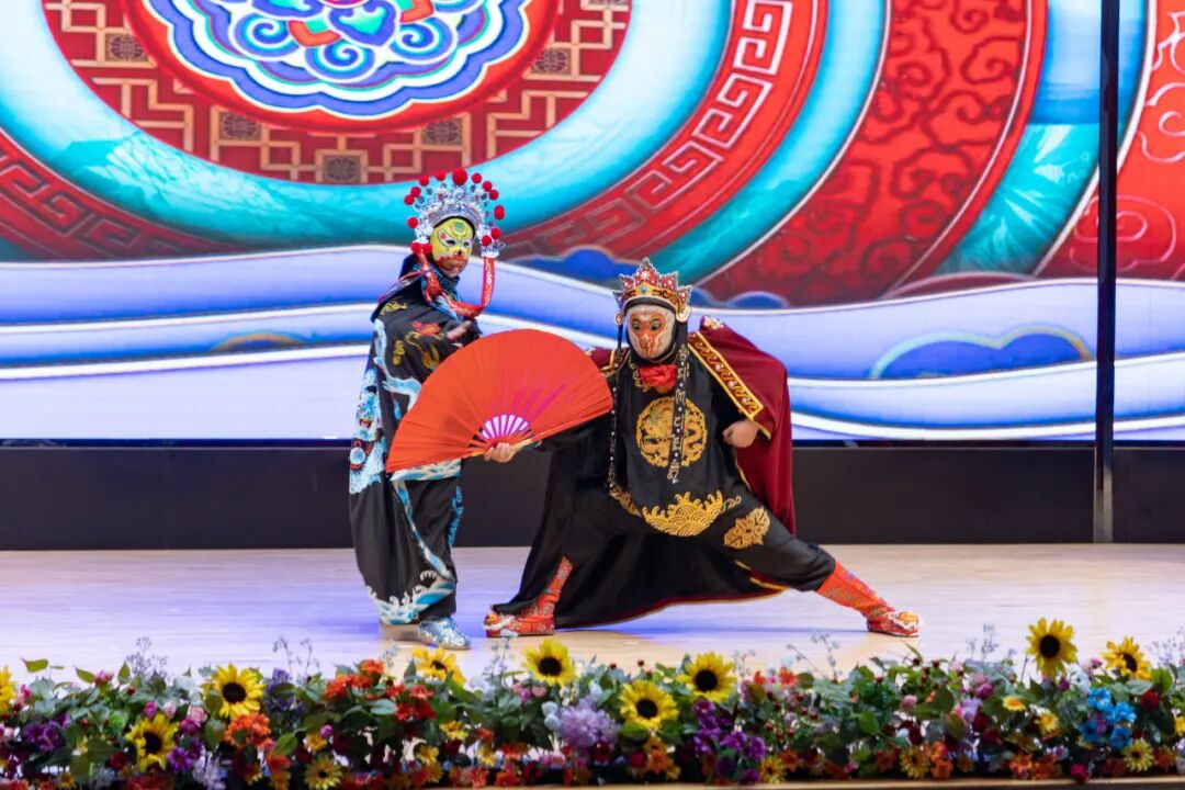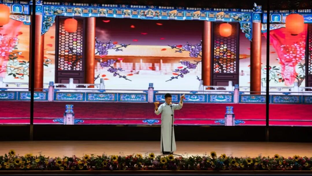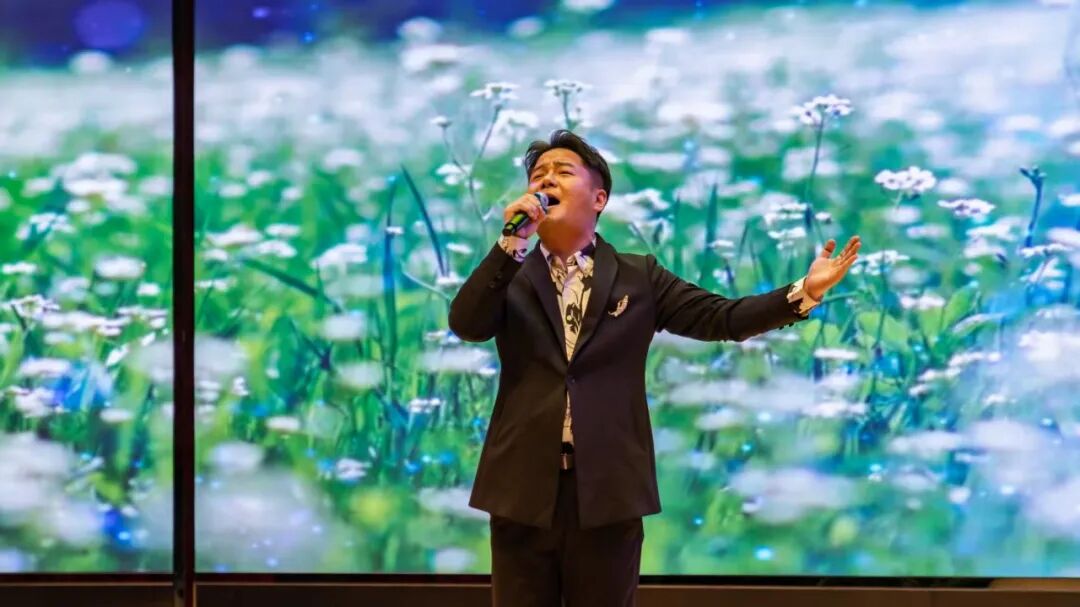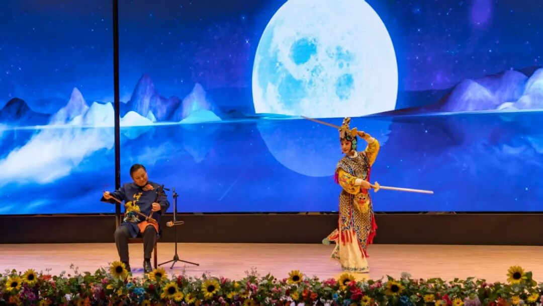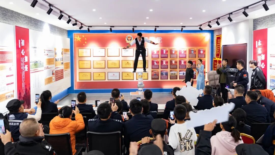中國紅梅戲曲大賽金獎獲得者、一級演員左雅攜手中國煤礦文工團(tuán)演奏員李鑫共同出演的京胡與舞劍作品《弦歌夜夢》剛?cè)岵?jì),盡顯傳統(tǒng)藝術(shù)魅力。“優(yōu)秀青年魔術(shù)師” 鐘燕的魔術(shù)作品《繁花似錦》,用連續(xù)的情節(jié)反轉(zhuǎn)和互動演繹勾起觀眾們的好奇心,舞臺上呈現(xiàn)出百花齊放的節(jié)目效果,寓意國家昌盛、繁花似錦。活動最后,兩屆 “青歌賽” 金獎獲得者、一級演員劉君俠,中宣部 “五個一工程” 獎獲得者葉翠深情演唱《共和國之戀》《為祖國干杯》等歌曲,動人歌聲將演出推向高潮,全場移民管理警察及家屬高聲合唱,家國情懷在歌聲中盡情抒發(fā)。